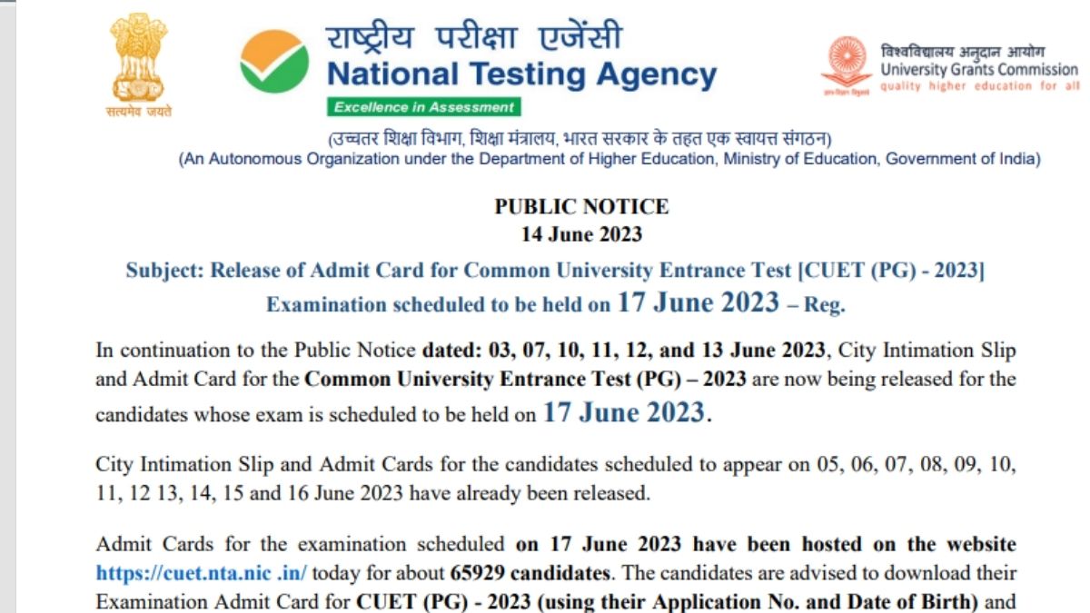 CUET PG 2023 Admit Card: 17 जून को होने वाले सीयूईटी पीजी एग्जाम के लिए हॉल टिकट जारी, जानें डाउनलोड का तरीका