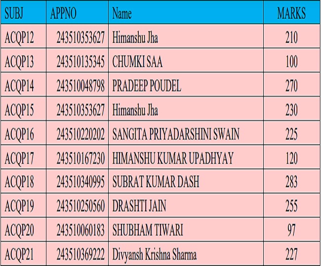 ये रहे विषयवार टॉपर्स स्टूडेंट्स के नाम