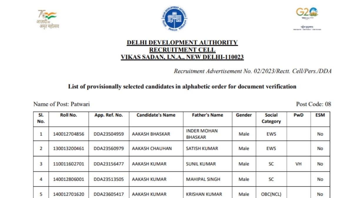 DDA Patwari Result 2023 Out: डीडीए पटवारी भर्ती परीक्षा परिणाम का हुआ एलान, इतने उम्मीदवारों का हुआ चयन