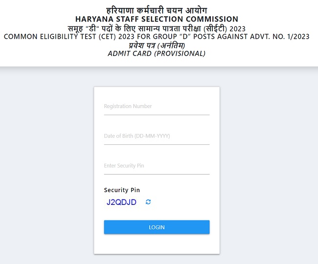 ऐसे में जिन उम्मीदवारों ने हरियाणा सीईटी (ग्रुप डी) 2023 के लिए आवेदन किया है, वे अपना प्रवेश पत्र आयोग की आधिकारिक वेबसाइट, hssc.gov.in पर एक्टिव किए गए लिंक या नीचे दिए डायरेक्ट लिंक से डाउनलोड कर सकते हैं। इसके लिए उम्मीदवारों को अपने रजिस्ट्रेशन नंबर, डेट ऑफ बर्थ और स्क्रीन पर दिए गए सिक्यूरिटी पिन के माध्यम से लॉग-इन करना होगा। लॉग-इन के बाद उम्मीदवार अपना हरियाणा ग्रुप डी एडमिट कार्ड 2023 डाउनलोड कर सकेंगे।