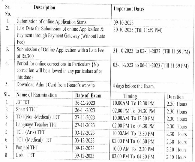 - पंजाबी एवं उर्दू टीईटी: 9 दिसंबर 2023