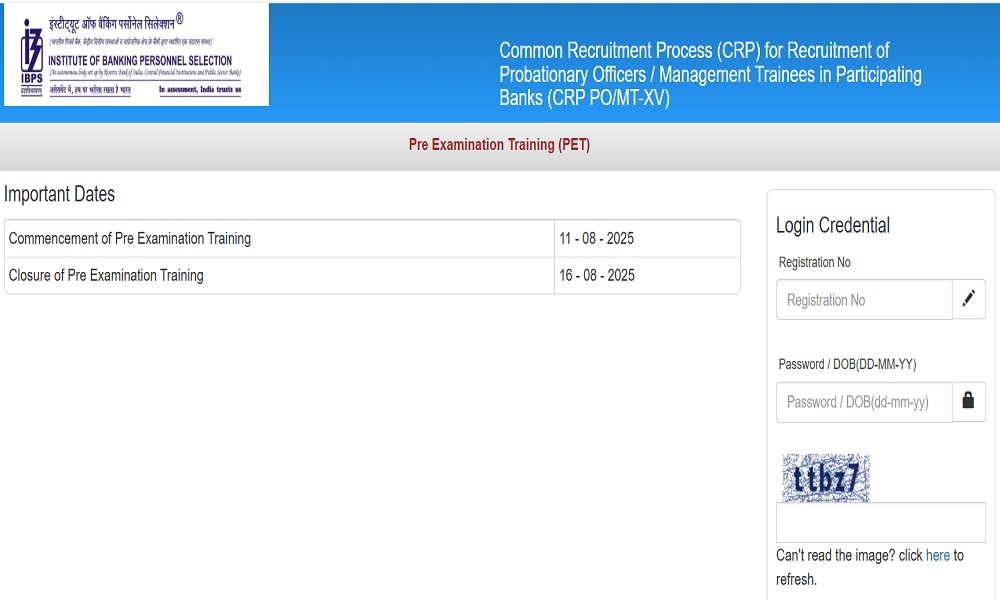 आईबीपीएस की ओर से पीओ Pre Examination Training (PET) के लिए कॉल लेटर आज यानी 11 अगस्त को जारी कर दिए गए हैं जो 16 अगस्त तक डाउनलोड के लिए उपलब्ध रहेंगे।