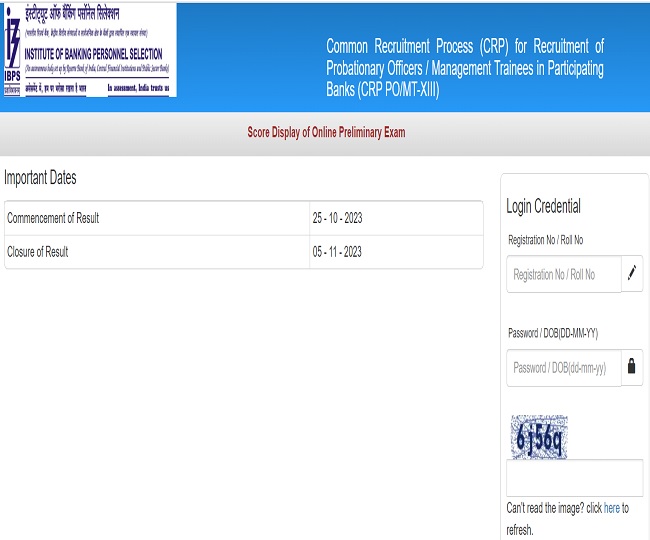 IBPS PO Prelims Scorecard 2023 Download Direct Link