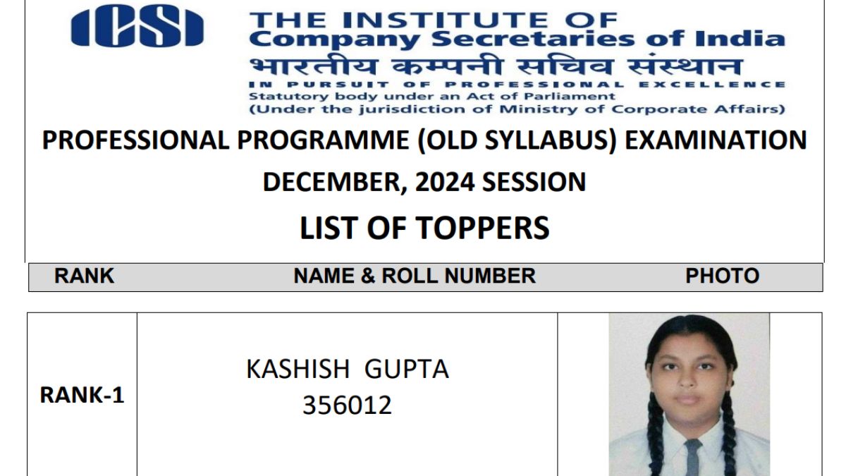 ICSI CS Topper List: सीएस प्रोफेशनल व एक्जीक्यूटिव टॉपर लिस्ट जारी, छात्राओं ने किया बेहतरीन प्रदर्शन