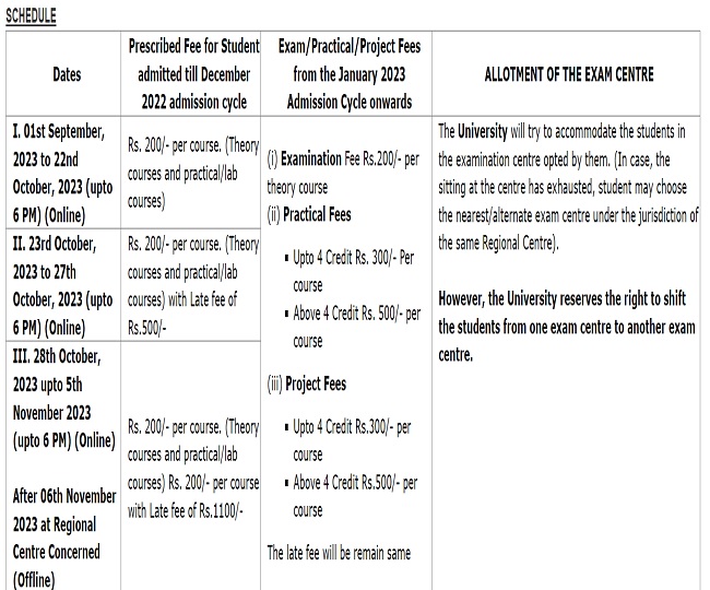 IGNOU December TEE Exam 2023 इग्नू दिसंबर टीईई 2023 एग्जाम में शामिल होने के लिए आवेदन की आज अंतिम तिथि है। अभ्यर्थी बिना लेट फीस के तुरंत ही ऑनलाइन माध्यम से फॉर्म भर सकते हैं। आज के बाद अभ्यर्थियों को लेट फीस का भुगतान करना होगा। लेट फीस के साथ उम्मीदवार 5 नवंबर 2023 तक ऑनलाइन माध्यम से एप्लीकेशन फॉर्म भर सकेंगे।