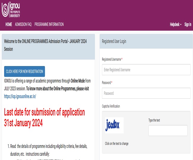 - वेबसाइट के होम पेज पर Fresh Admission for all programmes offered in ODL/Online mode for the January 2024 session लिंक पर क्लिक करना होगा।