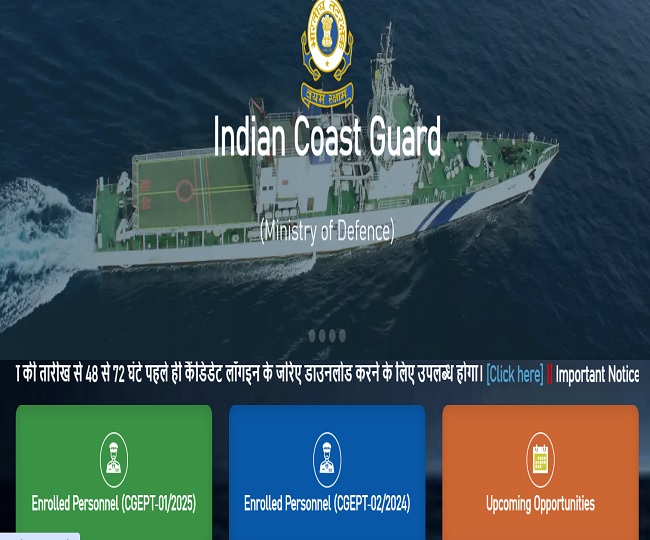 Indian Coast Guard NAVIK, YANTRIK भर्ती परीक्षा के लिए एग्जाम सिटी स्लिप जारी, जानें कब जारी होंगे एडमिट कार्ड