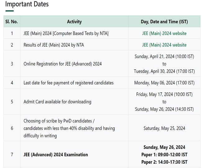 जेईई एडवांस रजिस्ट्रेशन 2024 शुरू होने की तिथि - 21 अप्रैल