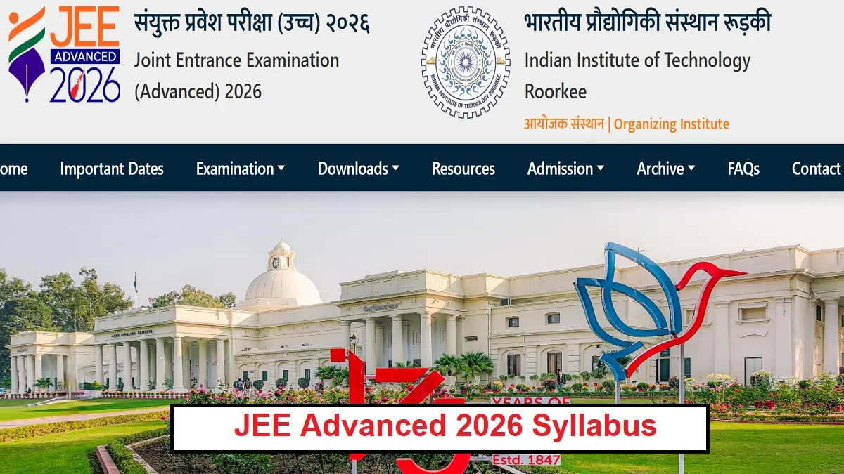 एजुकेशन डेस्क, नई दिल्ली। जेईई एडवांस 2026 एग्जाम की तैयारियों में लगे छात्रों के लिए बड़ी खबर है। परीक्षा की तैयारियों के लिए आईआईटी रुड़की की ऑफिशियल वेबसाइट jeeadv.ac.in पर छात्रों के लिए तीनों ही सब्जेक्ट (फिजिक्स, केमिस्ट्री एवं मैथमेटिक्स) के लिए सिलेबस (Syllabus) जारी कर दिया गया है। छात्र जेईई एडवांस सिलेबस ऑफिशियल वेबसाइट के साथ ही इस पेज पर दिए डायरेक्ट PDF लिंक पर क्लिक करके भी डाउनलोड कर सकते हैं।