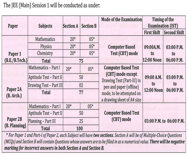 आपको बता दें कि राष्ट्रीय परीक्षा एजेंसी की ओर से सेशन 1 परीक्षा का आयोजन 22 जनवरी से 31 जनवरी 2025 तक करवाया जायेगा। परीक्षा कंप्यूटर बेस्ड टेस्ट (CBT) मोड में आयोजित की जाएगी। एग्जाम दो शिफ्ट में संपन्न होगा। पेपर 1 और पेपर 2 (A) का आयोजन पहली शिफ्ट में सुबह 9 बजे से लेकर दोपहर 12 बजे तक एवं दूसरी शिफ्ट में दोपहर 3 बजे से शाम 6 बजे तक संपन्न करवाया जाएगा। इसी प्रकार पेपर 2 A का आयोजन दूसरी शिफ्ट में करवाया जायेगा। एग्जाम से जुड़ी लेटेस्ट अपडेट के लिए छात्रों को समय समय पर ऑफिशियल वेबसाइट पर जाने की सलाह दी जाती है।