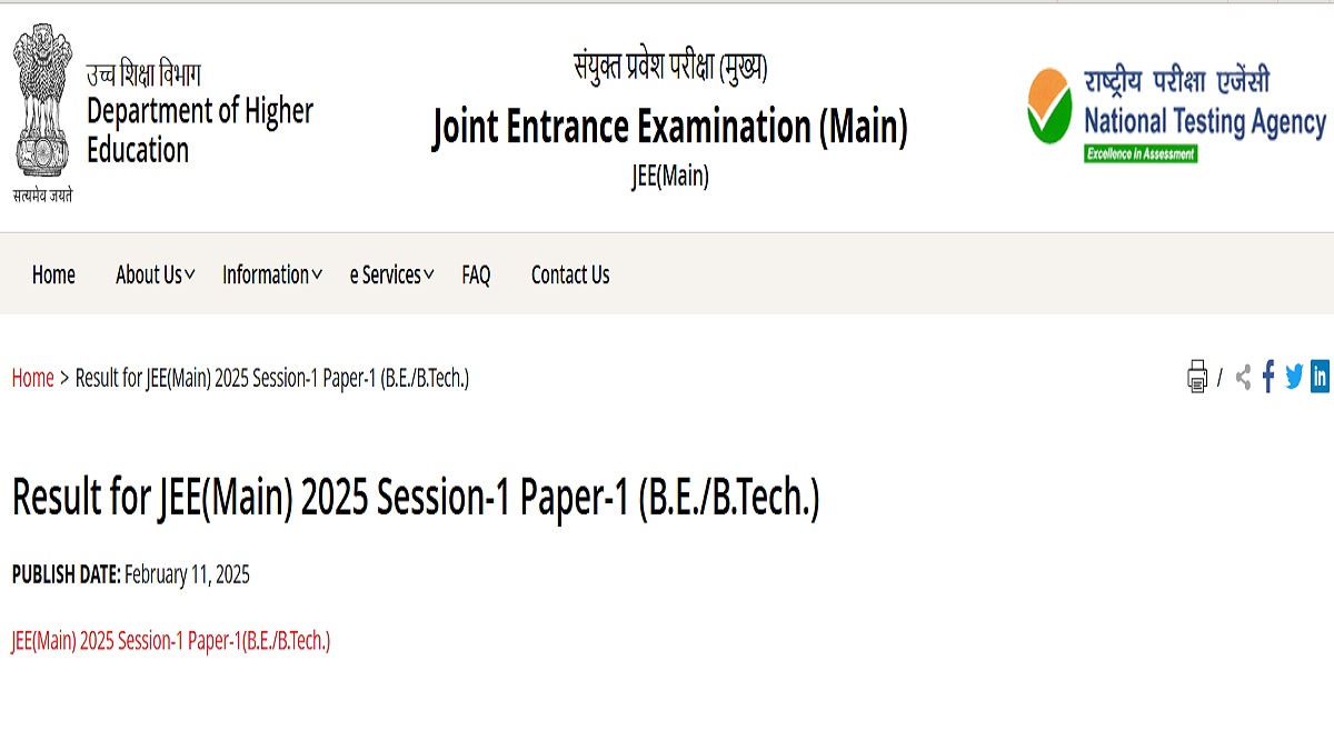 जेईई मेन सेशन-1 रिजल्ट चेक करने के लिए आपको सबसे पहले आधिकारक वेबसाइट पर जाना है।