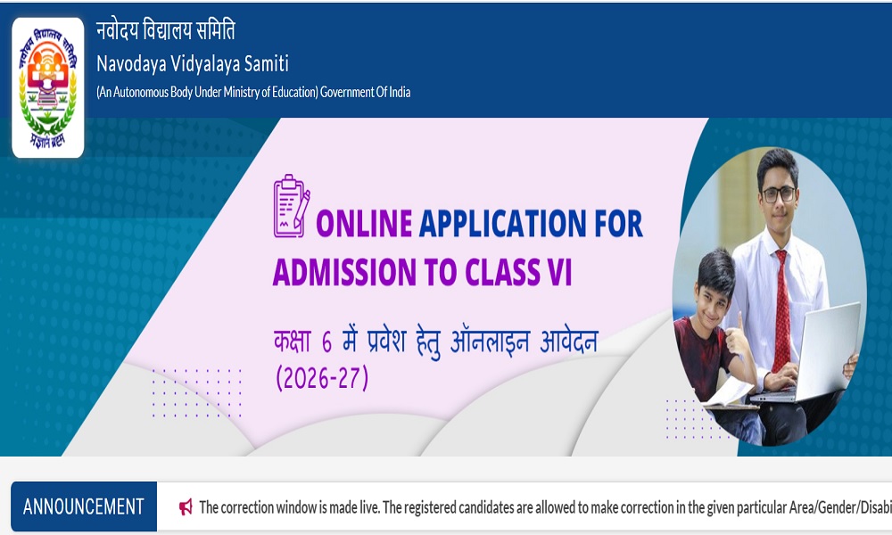 नवोदय विद्यालय क्लास 6 एप्लीकेशन फॉर्म में करेक्शन के लिए विंडो ओपन, 30 अगस्त तक रहेगा संशोधन का मौका