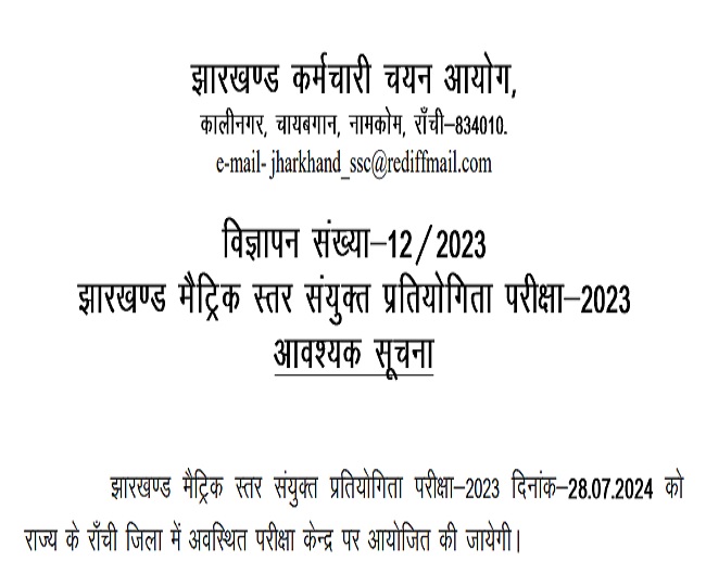 JSSC JMLCCE: झारखंड मैट्रिक स्तर संयुक्त प्रतियोगिता परीक्षा के लिए एडमिट कार्ड जारी, 28 जुलाई को होगा एग्जाम
