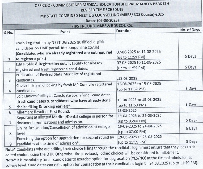 MP NEET UG Counselling 2025: एमपी नीट यूजी राउंड-1 अलॉटमेंट रिजल्ट आज होगा जारी, इन डेट्स में लेना होगा प्रवेश