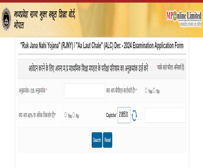 दिसंबर सेशन की परीक्षा में शामिल होने के लिए फॉर्म भरना आवश्यक है। एप्लीकेशन फॉर्म MPSOS की ऑफिशियल वेबसाइट mpsos.nic.in पर जाकर भरा जा सकता है। इसके साथ ही आप यहां दी जा रही स्टेप्स को फॉलो करके भी आवेदन प्रक्रिया पूर्ण कर सकते हैं।