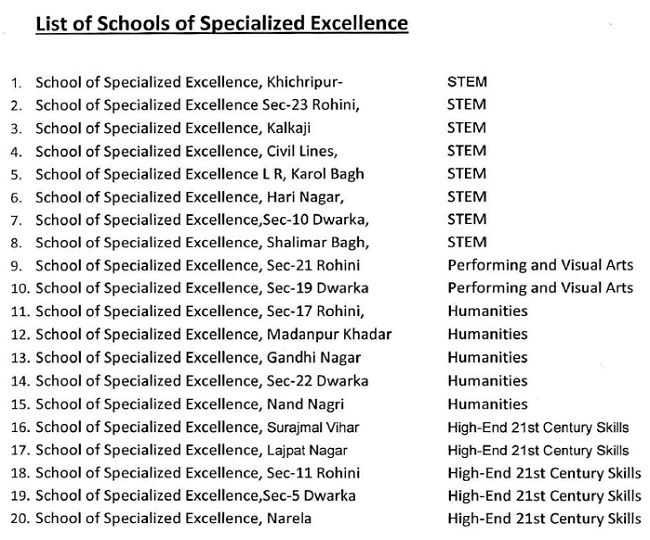 जो भी पैरेंट्स अपने बच्चों का दाखिले दिल्ली विद्यालयी शिक्षा बोर्ड के इन ‘स्कूल ऑफ स्पेशलाइज्ड एक्सीलेंस’ (एसओएसई) में कराना चाहते हैं, वे दिल्ली शिक्षा निदेशालय की ऑफिशियल वेबसाइट पर एसओएसई सेक्शन, edudel.nic.in/sose पर उपलब्ध कराये गये ऑनलाइन अप्लीकेशन फॉर्म के माध्यम से आवेदन कर सकते हैं। साथ ही, जिन 20 एसओएसई में दाखिला होना है, उनकी लिस्ट नीचे दी गयी है।