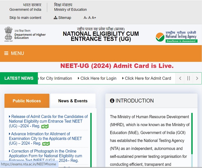 NEET UG एडमिट कार्ड 2024 डाउनलोड लिंक