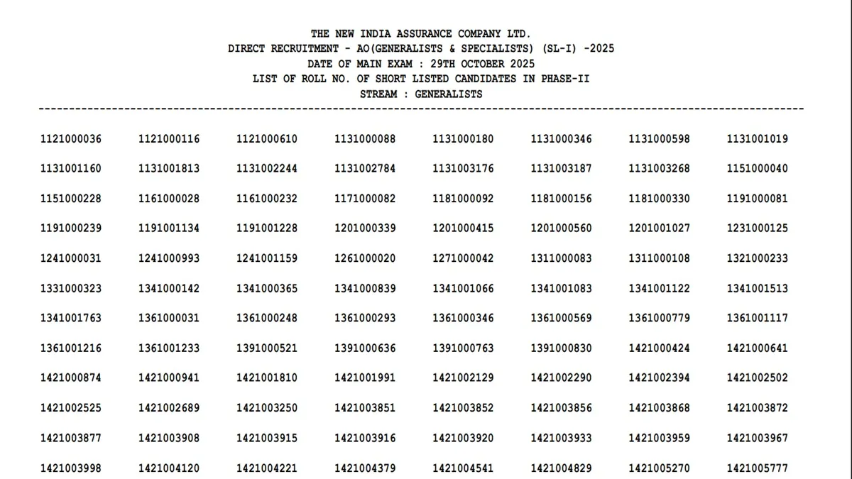 एनआईएसीएल की ओर डमिनिस्ट्रेटिव ऑफिसर (AO) की प्रारंभिक परीक्षा का आयोजन 14 सितंबर, 2025 को किया गया था। इस परीक्षा में सफल हुए उम्मीदवारों के लिए 29 अक्टूबर को मुख्य परीक्षा आयोजित कराई गई थी।