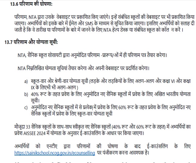 अखिल भारतीय सैनिक स्कूल प्रवेश परीक्षा (AISSEE) 2024 के नतीजों की घोषणा के अंतर्गत NTA द्वारा इसमें सम्मिलित छात्र-छात्राओं के स्कोर कार्ड जारी किए जाएंगे। पैरेंट्स को अपने-अपने बच्चे का रिजल्टे देखने के लिए इस परीक्षा की आधिकारिक वेबसाइट, exams.nta.ac.in/AISSEE पर एक्टिव होने वाले लिंक से परिणाम (AISSEE Results 2024) पेज पर जाना होगा और फिर अपने बच्चे का अप्लीकेशन नंबर व डेट ऑफ बर्थ की डिटेल भरकर सबमिट करके परिणाम देख सकेंगे। साथ ही, दिए गए लिंक से स्कोर कार्ड डाउनलोड और प्रिंट भी कर सकेंगे।