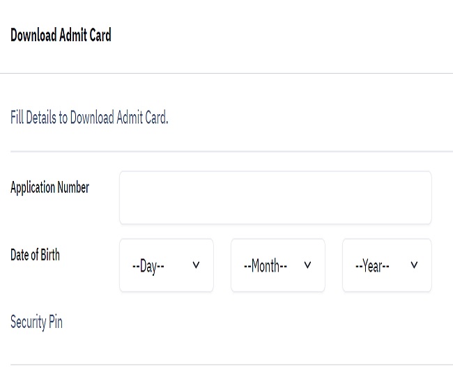 - इसके बाद आपको एप्लीकेशन नंबर, डेट ऑफ बर्थ एवं दिया गया सिक्योरिटी पिन दर्ज करके डाउनलोड एडमिट कार्ड बटन पर क्लिक करना होगा।