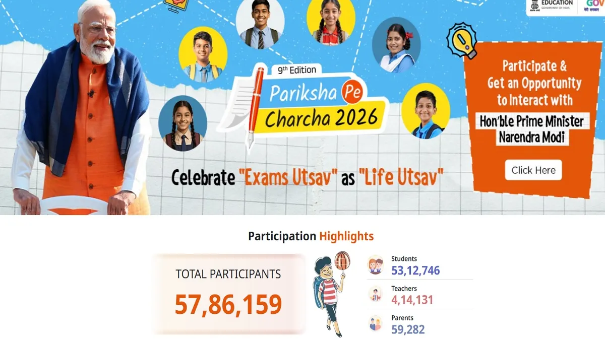 एजुकेशन डेस्क, नई दिल्ली। परीक्षा पे चर्चा के 9वें संस्करण के लिए रजिस्ट्रेशन प्रक्रिया जारी है। छात्रों के साथ ही इसमें शामिल होने के लिए टीचर एवं पेरेंट्स भी बढ़-चढ़कर हिस्सा ले रहे हैं। PPC 2026 Registration के लिए लास्ट डेट 11 जनवरी 2026 निर्धारित है। ऐसे में जो छात्र, टीचर्स या माता पिता परीक्षा पे चर्चा के लिए आवेदन करना चाहते हैं वे तय तिथियों के अंदर ऑनलाइन माध्यम से innovateindia1.mygov.in पर जाकर रजिस्ट्रेशन कर सकते हैं।