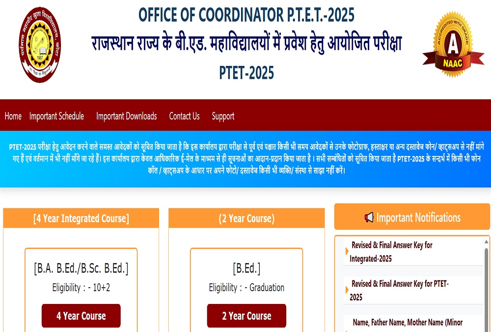 - राजस्थान पीटीईटी रिजल्ट 2025 चेक करने के लिए सबसे पहले आधिकारिक वेबसाइट पर विजिट करना होगा।