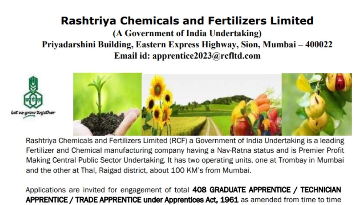 RCFL Recruitment: राष्ट्रीय केमिकल्स एंड फर्टिलाइजर्स लिमिटेड अप्रेंटिस भर्ती के लिए ऐसे करें ऑनलाइन आवेदन