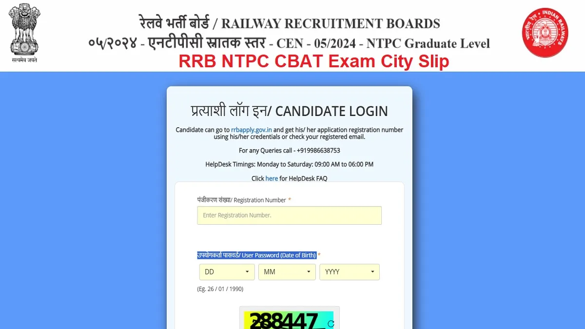 RRB NTPC CBAT Exam City Link: रेलवे एनटीपीसी ग्रेजुएट सीबीएटी सिटी इंटीमेशन स्लिप जारी, ये रहा डायरेक्ट लिंक