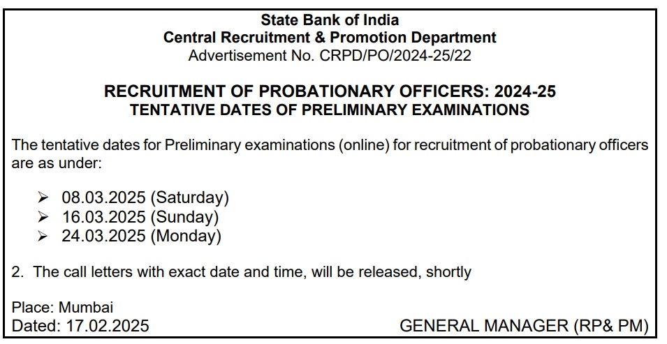 SBI PO Exam Date 2025: एसबीआई ने नोटिफिकेशन जारी कर पीओ प्रीलिम एग्जाम डेट्स का किया एलान, इन डेट्स में आयोजित होगी परीक्षा