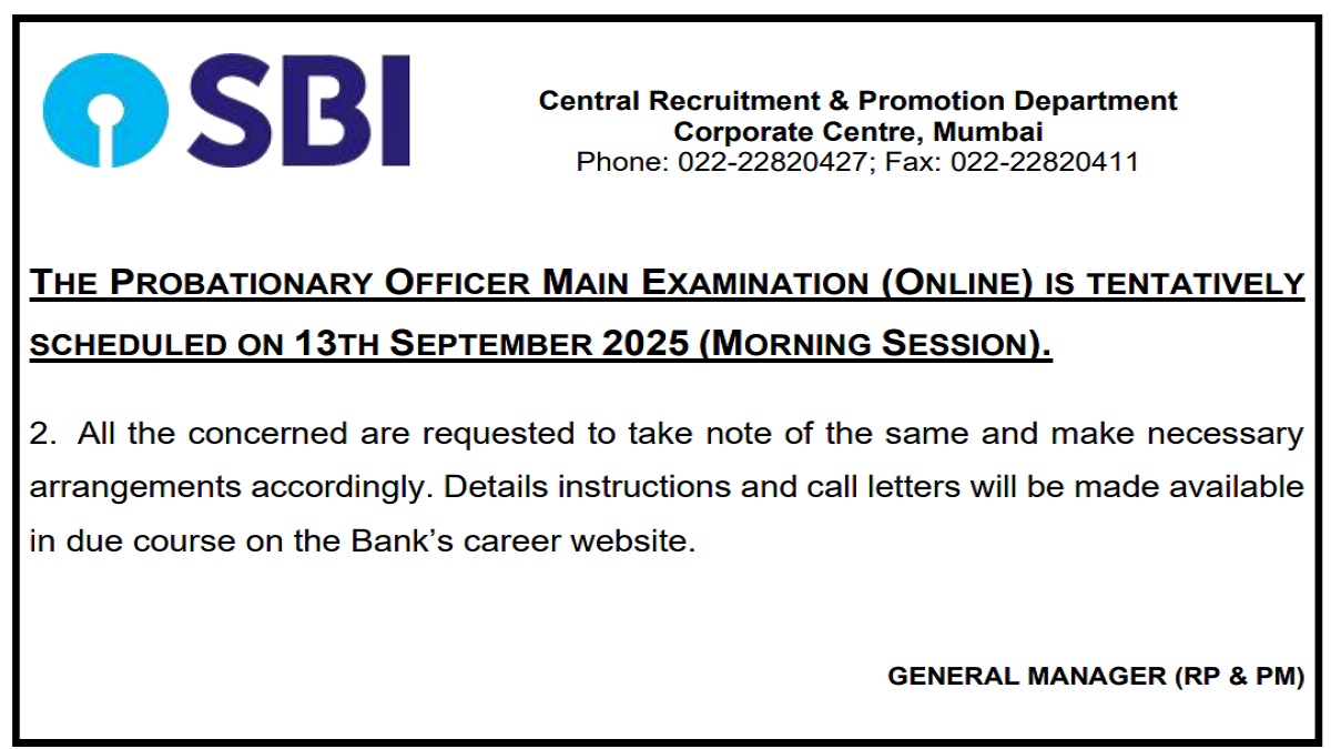 SBI PO Mains 2025 Date: एसबीआई पीओ मेंस एग्जाम डेट घोषित, 13 सितंबर को होगी परीक्षा, एडमिट कार्ड जल्द