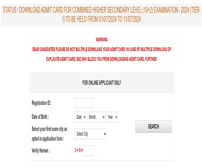 स्टाफ सिलेक्शन कमीशन (एसएससी) की ओर से कंबाइंड हायर सेकेंडरी लेवल एग्जामिनेशन (10+2) का आयोजन देशभर में निर्धारित परीक्षा केंद्रों पर 1, 2, 3, 4, 5, 8, 9, 10, 11 जुलाई 2024 को करवाया जाएगा।