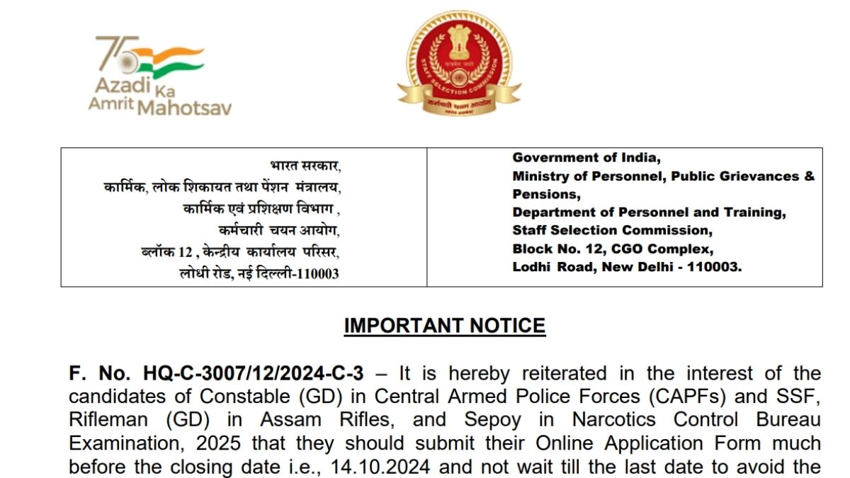 SSC GD Constable 2025: जीडी कॉन्स्टेबल भर्ती के संबंध में एसएससी ने जारी किया ये अहम नोटिस, कर लें चेक