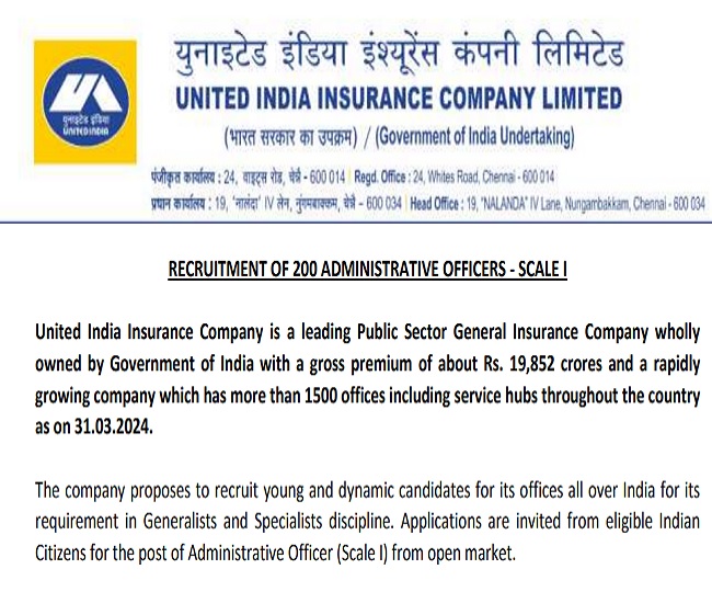 UIIC Recruitment 2024: एडमिनिस्ट्रेटिव ऑफिसर स्केल-1 भर्ती के लिए नोटिफिकेशन जारी, आवेदन कल से होंगे स्टार्ट