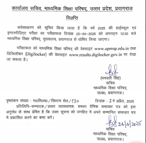 UP Board 2025 Result link upmsp.edu.in एवं result.digilocker.gov.in पर एक्टिव, यहां से डाउनलोड करें डिजिटल मार्कशीट