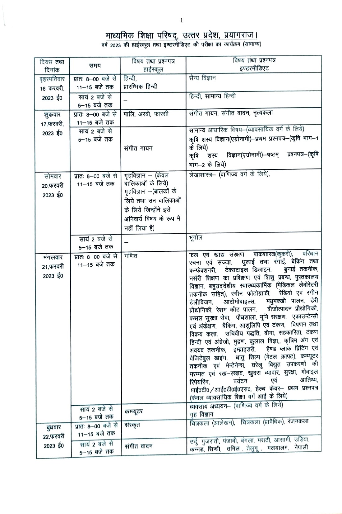 UPMSP 10th, 12th Date Sheet 2023: यूपी बोर्ड हाई स्कूल व इंटर परीक्षाएं 16 फरवरी से, टाइम-टेबल करें डाउनलोड