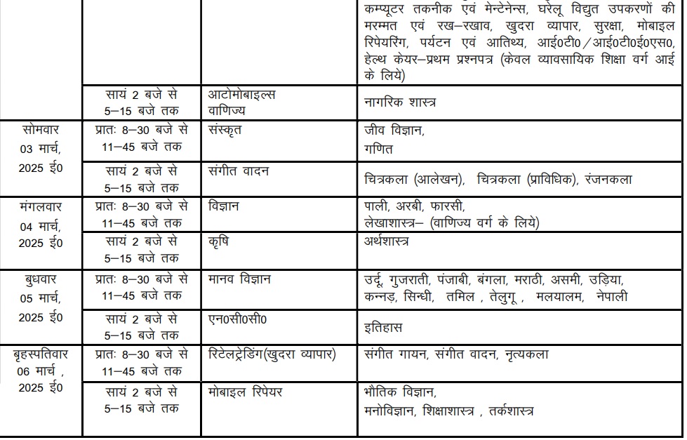UP Board Time Table 2025: जानें किस तिथि में किस विषय की होगी परीक्षा, यूपी बोर्ड 10वीं, 12वीं का पूरा टाइम टेबल यहां से करें चेक