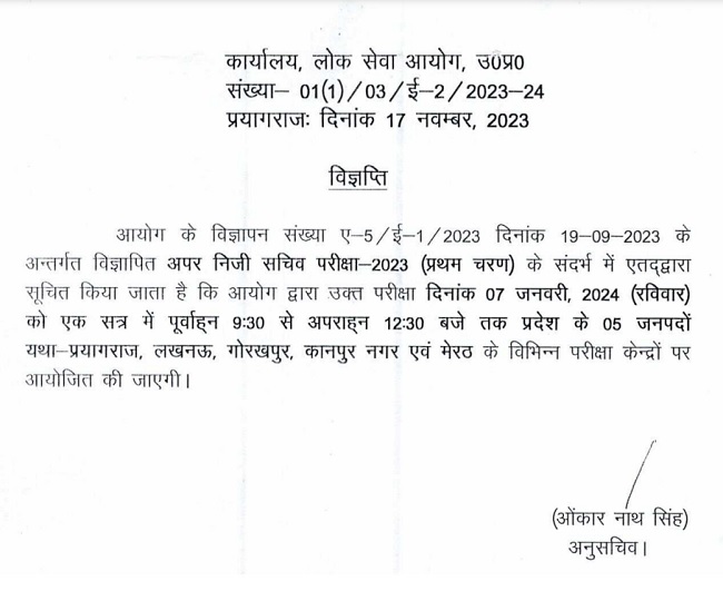 UPPSC APS Exam 2023 Date: उत्तर प्रदेश अपर निजी सचिव परीक्षा का पहला चरण 7 जनवरी को, 5 जनपदों होगा प्रिलिम्स