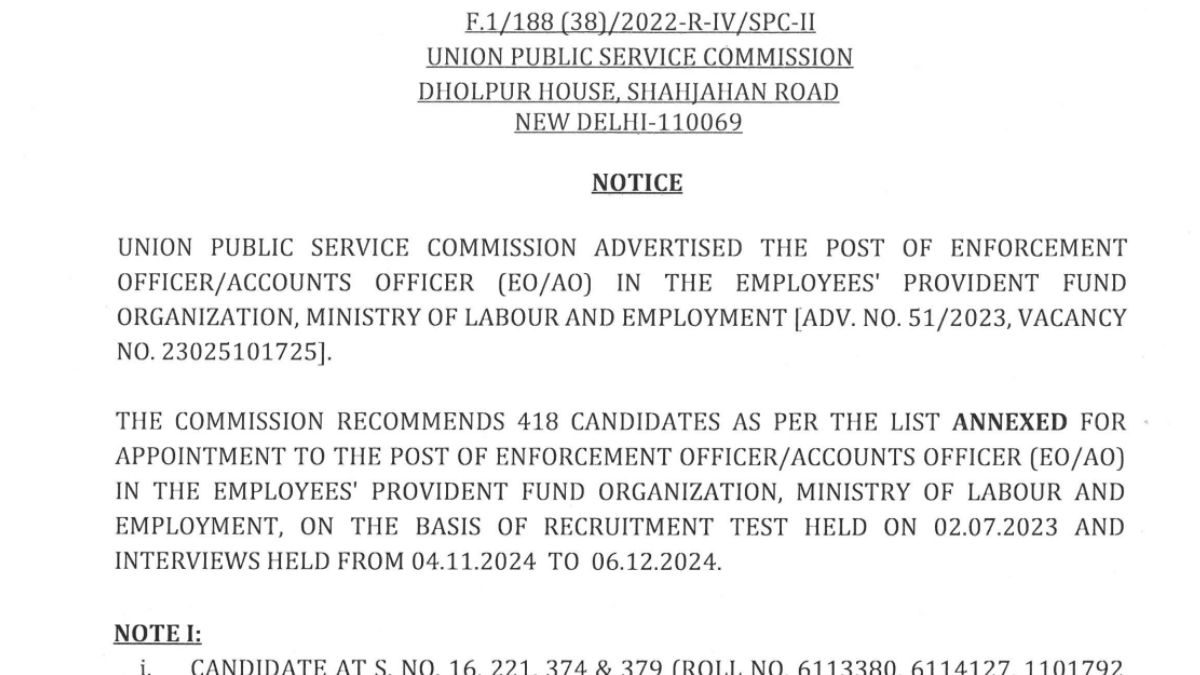 इस लिंक से चेक करें यूपीएससी ईपीएफओ ईओ, एओ 2024 परिणाम