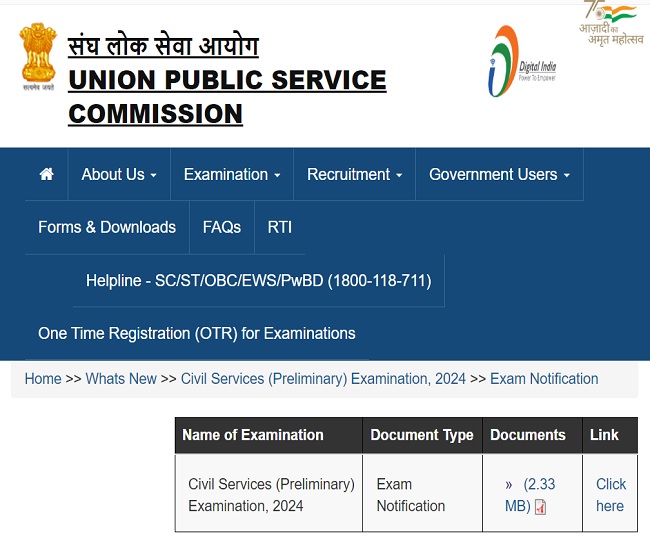 - सिविल सेवा परीक्षा 2024 और भारतीय वन सेवा परीक्षा 2024 के लिए अधिसूचना अलग-अलग जारी की गई है।
