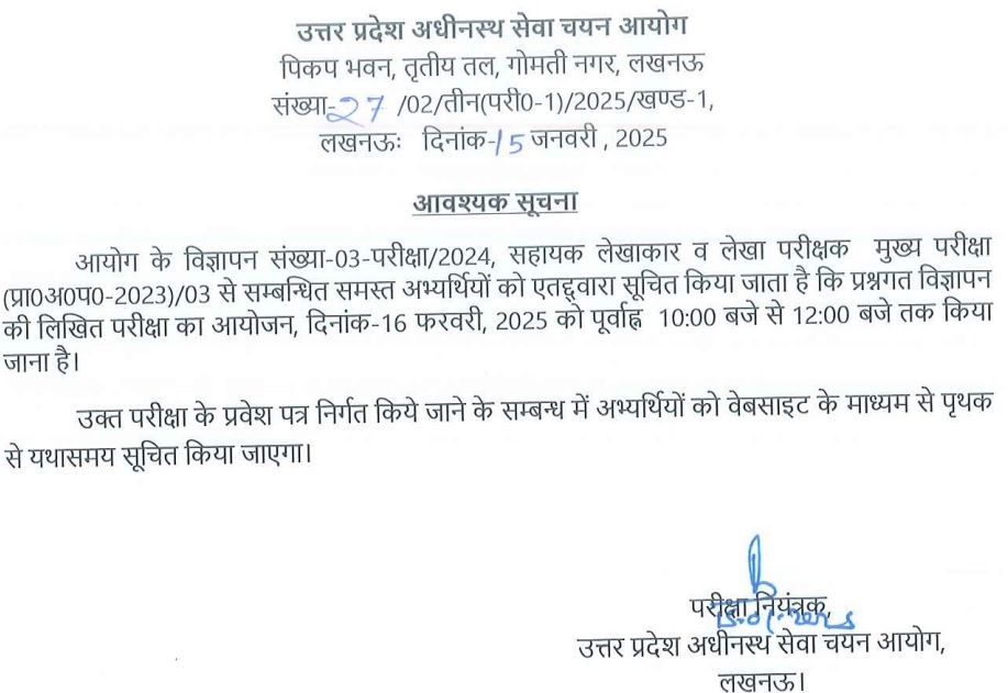 एजुकेशन डेस्क, नई दिल्ली। उत्तर प्रदेश असिस्टेंट अकाउंटेंट एवं ऑडिटर भर्ती 2024 में आवेदन करने वाले उम्मीदवारों के लिए बड़ी खबर है। उत्तर प्रदेश अधीनस्थ सेवा चयन आयोग (UPSSSC) की ओर से इस भर्ती के लिए एग्जाम डेट की घोषणा कर दी गई है। यह जानकारी ऑफिशियल वेबसाइट upsssc.gov.in पर नोटिफिकेशन जारी कर प्रदान की गई है।