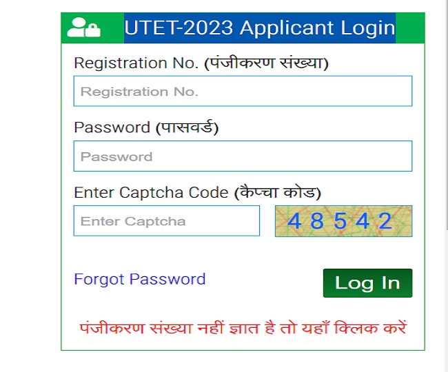 - ऑफिशियल वेबसाइट पर आपको UTET-2023 Applicant Login में जाकर पहले रजिस्ट्रेशन नंबर, पासवर्ड एवं कैप्चा कोड दर्ज करने के बाद लॉग इन बटन पर क्लिक करना है।