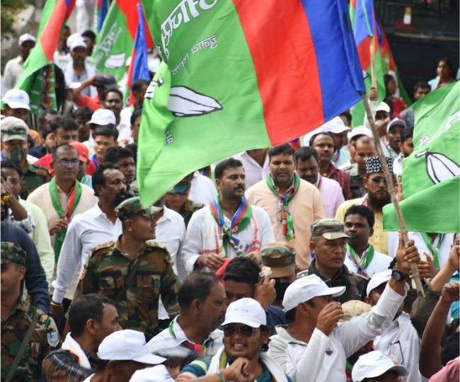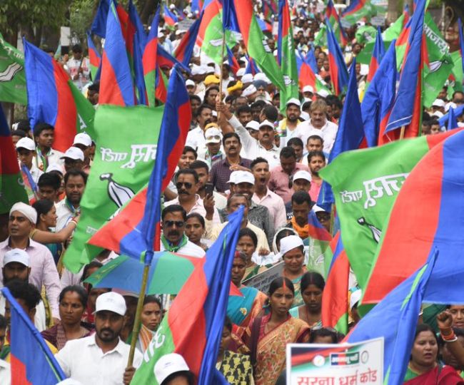 हेमंत सोरेन सरकार की नीतियों के विरोध में आजसू ने निकाला 'सामाजिक न्याय मार्च'।