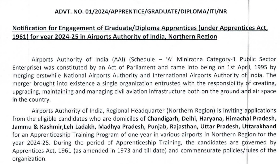 AAI Apprenticeship: एयरपोर्ट अथॉरिटी ऑफ इंडिया में अप्रेंटिस पदों पर सरकारी नौकरी पाने का मौका, जल्द करें अप्लाई