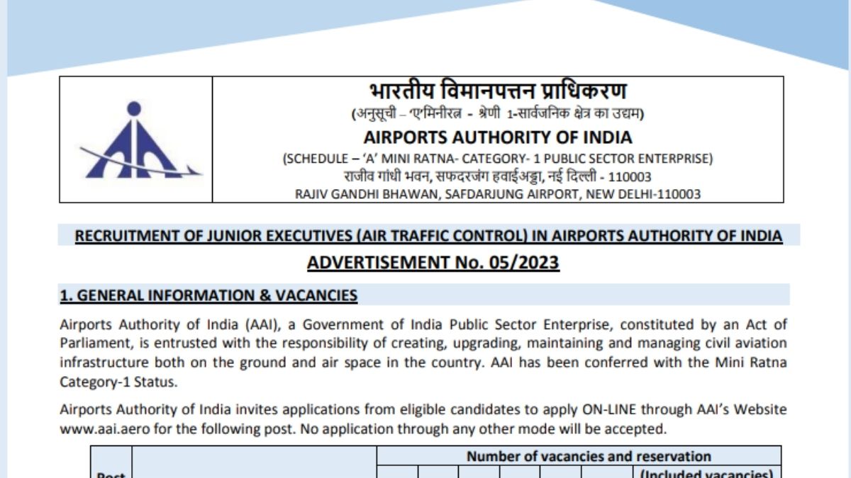 AAI Junior Executive Recruitment 2023: एयरपोर्ट अर्थारिटी ऑफ इंडिया जूनियर एग्जीक्यूटिव भर्ती के लिए ऐसे करें आवेदन