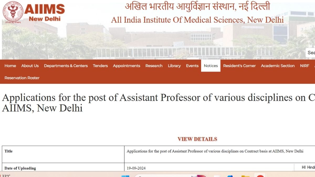 एम्स दिल्ली असिस्टेंट प्रोफेसर पद के लिए आवेदन करने की अंतिम तिथि-05 अक्टूबर 2024