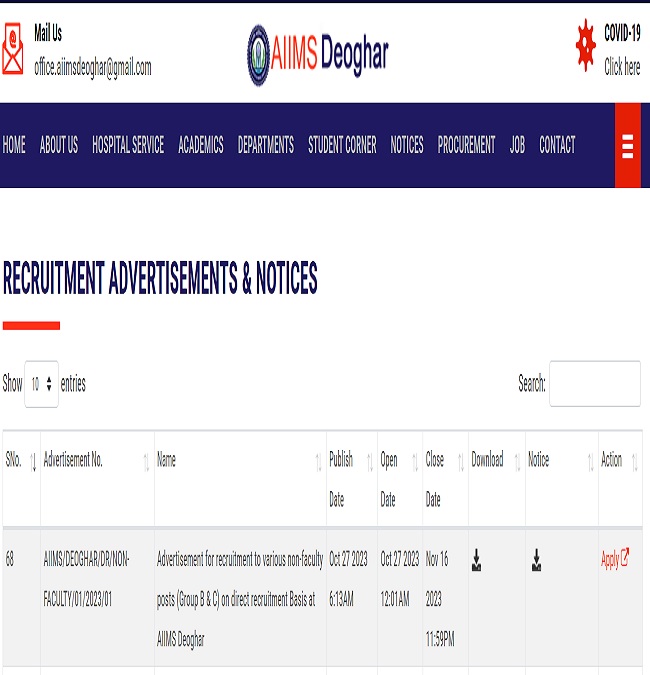 - इस भर्ती में आवेदन करने के लिए सबसे पहले आधिकारिक वेबसाइट aiimsdeoghar.edu.in पर जाएं