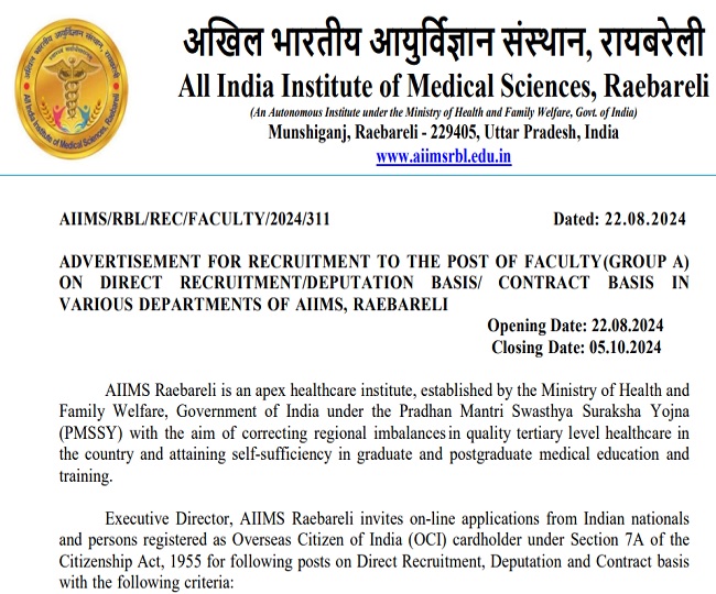 AIIMS Recruitment 2024: एम्स रायबरेली में में प्रोफेसर, एसोसिएट प्रोफेसर सहित अन्य पदों पर निकली भर्ती, यहां पढ़ें पूरी डिटेल