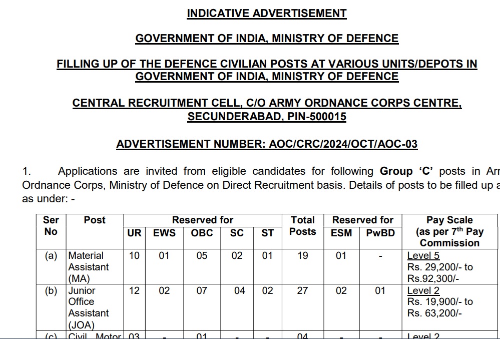 AOC Recruitment 2024: आर्मी ऑर्डिनेंस कॉर्प्स में ट्रेड्समैन, फायरमैन सहित अन्य पदों पर आवेदन शुरू, भर्ती डिटेल यहां से करें चेक