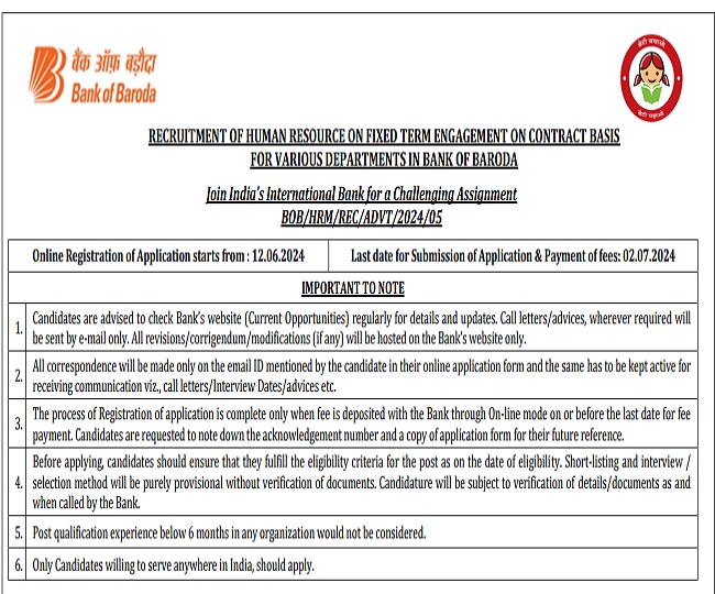 Bank of Baroda Recruitment 2024: तुरंत कर लें बैंक ऑफ बड़ौदा में विभिन्न पदों पर आवेदन, आज बंद हो जाएगी एप्लीकेशन विंडो