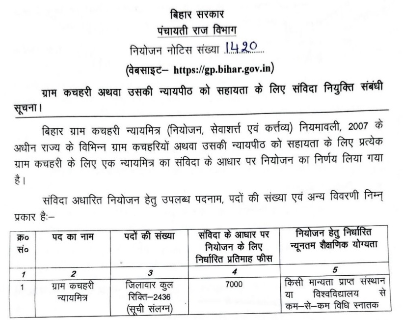 - Bihar Nyaya Mitra Vacancy 2025 Notification link